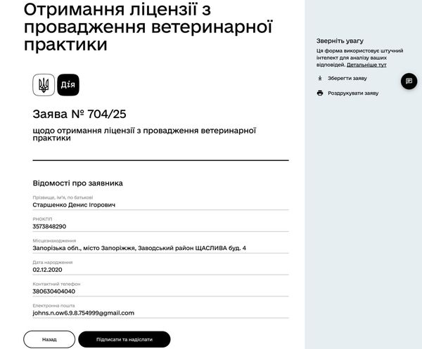Ветеринарна ліцензія — саме такий кейс. Складна, багатокомпонентна, з чіткими вимогами до професійної кваліфікації. У заявці може бути кілька співробітників — і кожен із них має пакет документів, який треба вичитати, звірити, затвердити. До впровадження ШІ це робилося вручну. На одну навіть ідеально оформлену заявку треба було витратити певний час — на одну людину це хвилини в ідеальних умовах, без збоїв та відволікань. А якщо людей у заявці багато, чи дані розбіжні? А якщо сертифікат утратив чинність? А якщо прізвище змінилось, чи диплом старий? Все це суттєво уповільнювало процес обробки даних.
